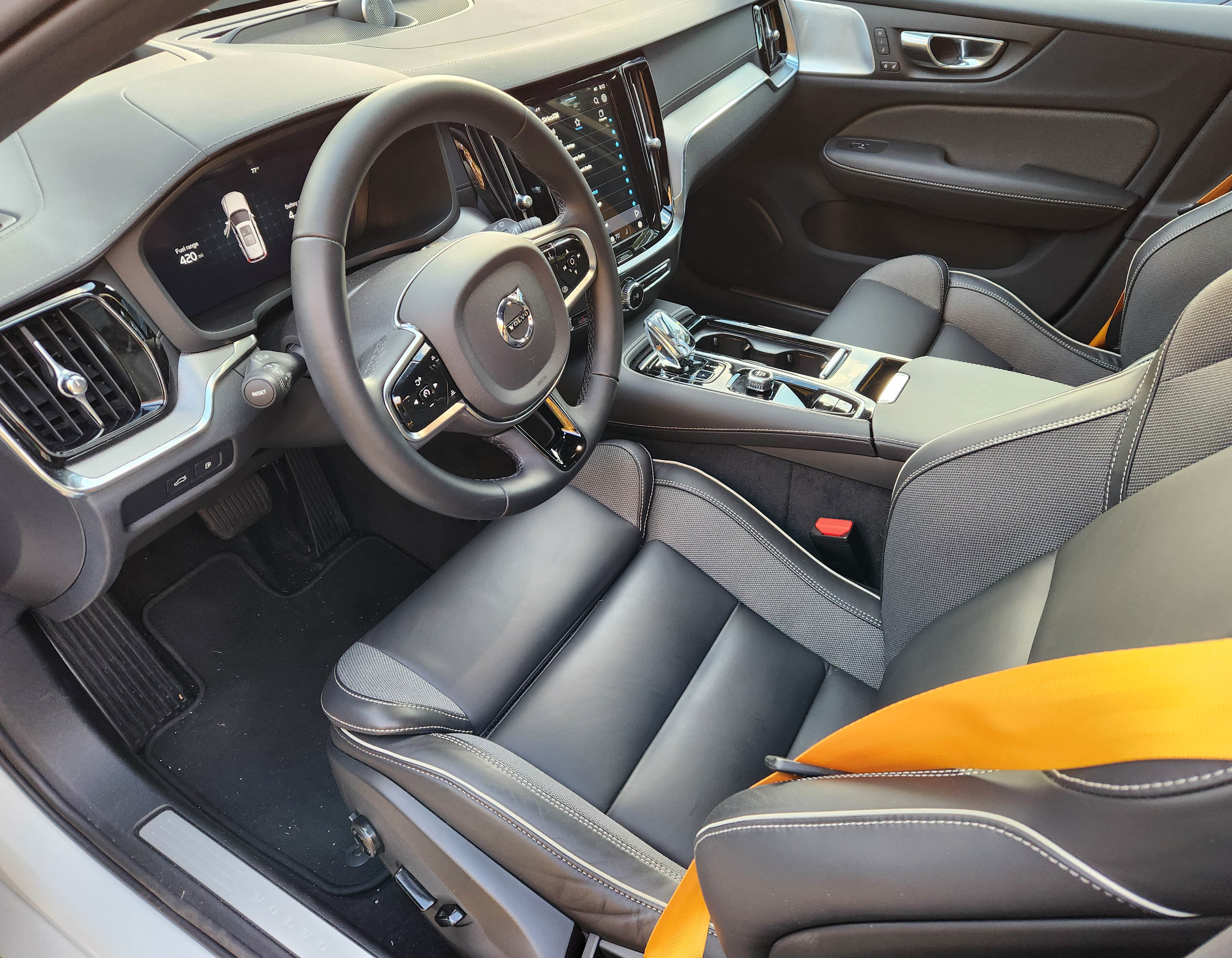 While there also are much bigger touchscreens being used now, Volvo’s infotainment screen is certainly large enough and vertical, so easy to see and get at. Yet Volvo’s system hides a lot beyond the main screen so one must scroll to find, for instance, all the various driving modes. Those heated seat and steering wheel icons on the main screen also could be larger, and be forewarned that climate changes are always two degrees at a time.