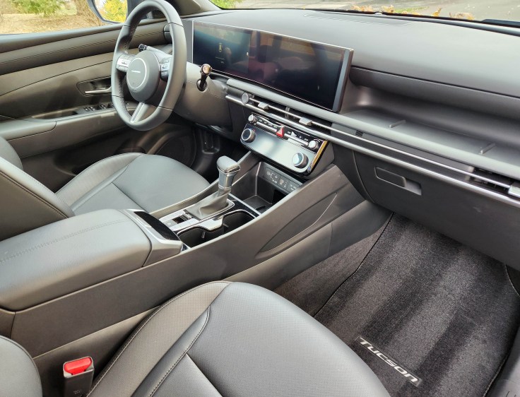 While there’s no sunroof, that may aid the quietness of Tucson’s interior. This is as peaceful as most luxury SUVs and crossovers. Primo sound deadening may help there too, as does a quiet 2.5-liter I4. It only gets boisterous if you slam the accelerator to the floor to zip out of the way of a marauding right-lane highway hot rodder.