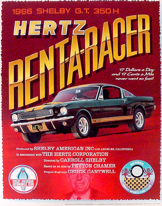 1,000 GT350-Hs were added to the Hertz fleet and if you were a Hertz Sports Club member, and over 25 years old, you could rent a 306 horsepower Mustang for just 17 bucks a day and 17 cents per mile which was a sweet deal at the time.