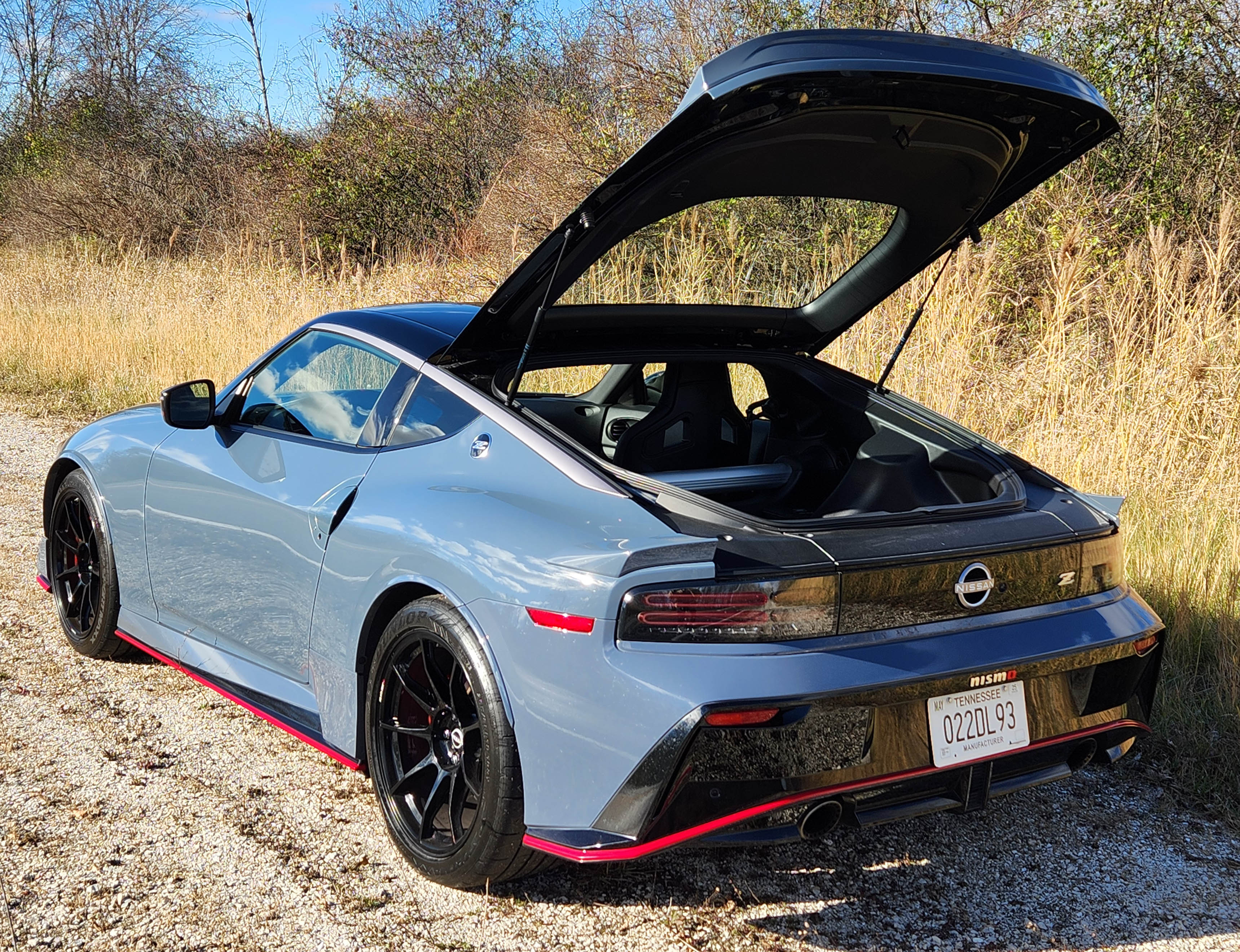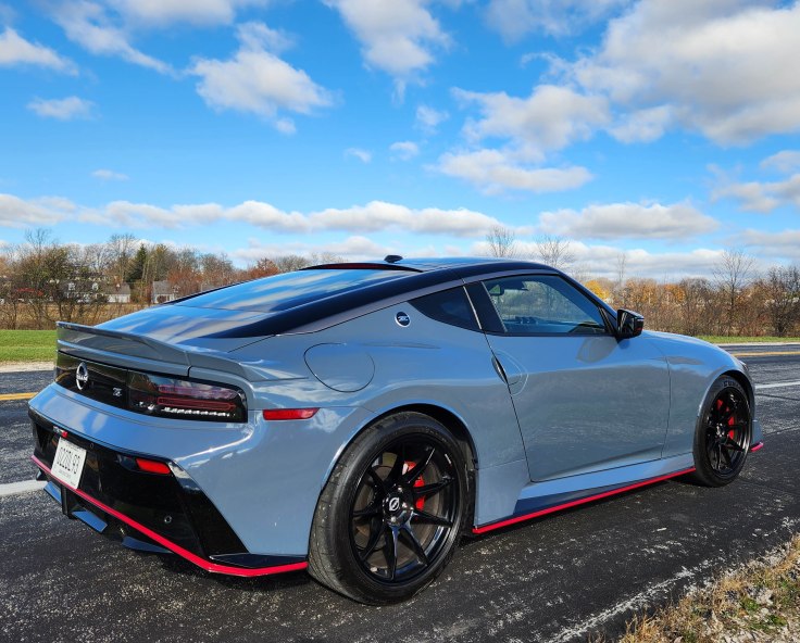 The new Z is both sporty and elegant, the Nismo trim looks great with a gray and black paint scheme ($1,295 extra) with blaze orange accents. (Is it still hunting season?) Even if the profile wasn’t so sleek it would look pretty fast. And fast is what one demands of performance-oriented sports car.