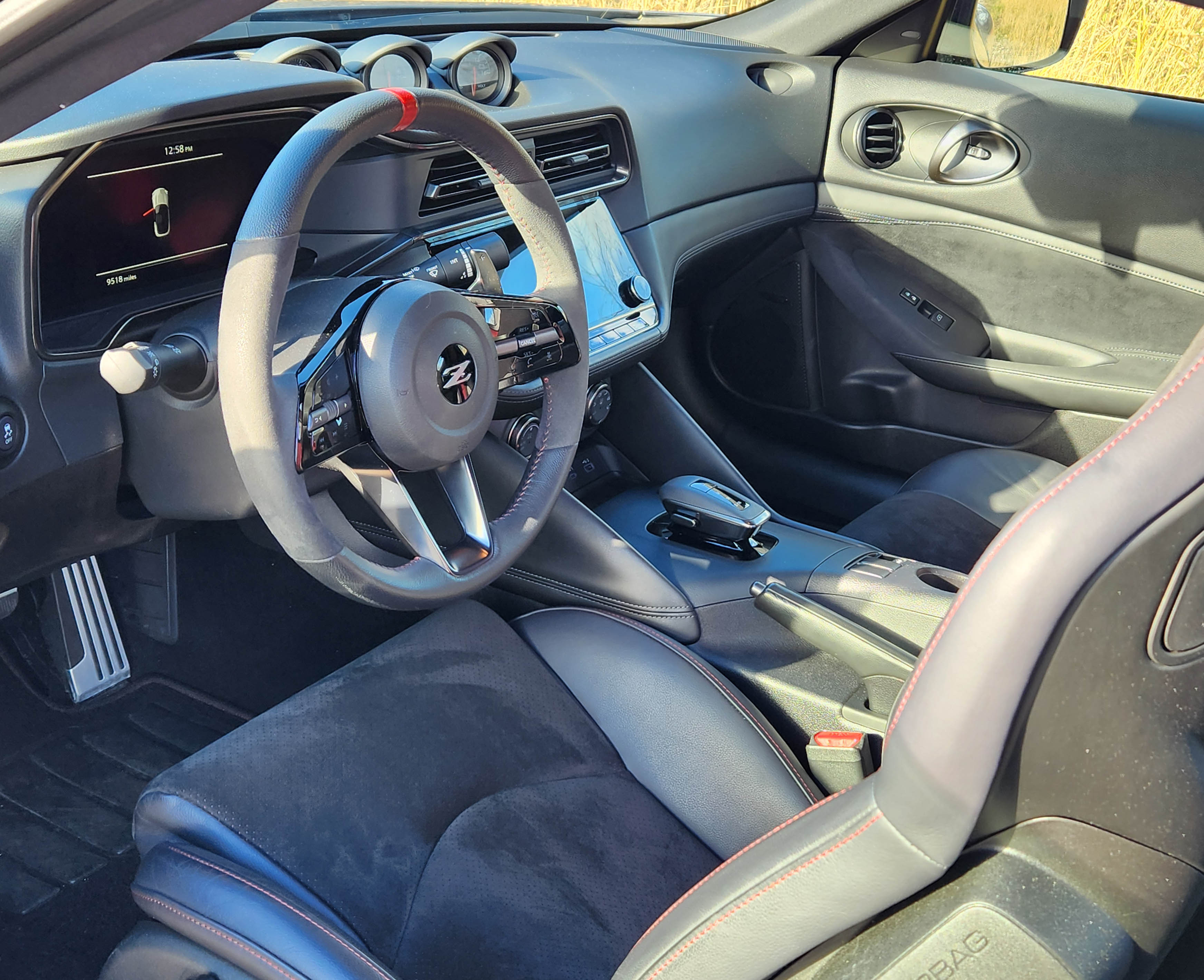 Love the seats here but must mention that even if you’re not 60-something, climbing out of the driver’s seat is not a pretty sight. Best to flip up the tilt/telescope wheel for maximum knee clearance. Then if you’re short put the seat back a few notches before rolling to the side with a hand on the rocker panel and push off the wheel to swing your legs out. Also be sure the door is 100% opened to maximize your exit angle. You’ll probably want to park your Z away from big trucks and SUVs in a parking lot anyway.