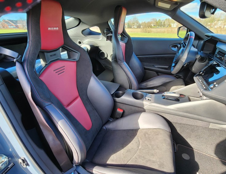 A couple oops from the Z that could affect your purchase decision if horsepower is not your top prerequisite. The NISMO edition does not have heated or cooled seats, nor a heated steering wheel, somewhat limiting its comfort level in northern climes like ours in Wisconsin.