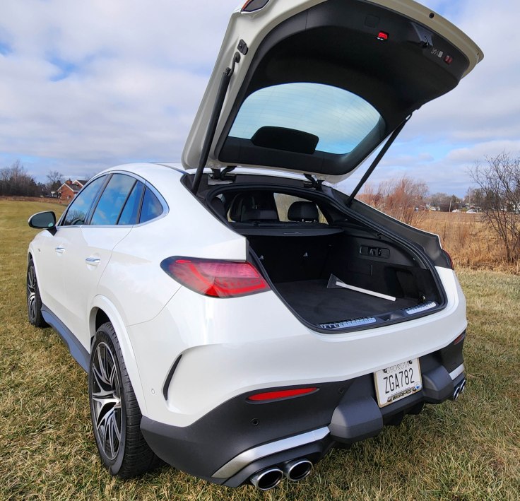 That’s fun, but driving the GLC 43 around town and getting onto highways there’s a major engine lag, probably turbo induced, that makes the “coupe” hesitate noticeably when one gets on the gas pedal. It’s annoying, just before the retro-rockets seem to kick in to distill the fun.