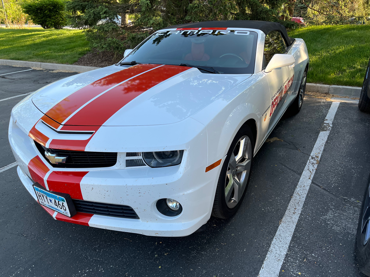It all began with the race in 1911 where a Stoddard-Dayton paced the cars at the Indy 500. Yup, I wouldn’t have guessed that name either since it’s one of the long-gone automotive names. It actually paced two more 500s, 1913 and 1914. Being out in front of the 33 cars is a big deal for a manufacturer since they get great exposure on a national stage. This week’s spot, a 2011 Camaro convertible is a perfect example.