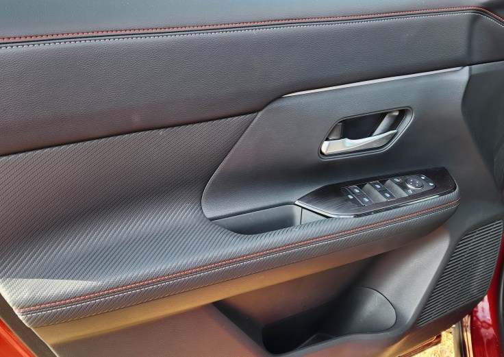 Handling remains quick and easy, a Kicks strong point, along with the improved traction and a bit more power. Ride though remains abrupt at times. It’s pretty firm. Part of that could be the 19-inch tires and wheels here compared with 18-inch standard tires. The larger alloy wheels were $355 extra but the package also included roof rail crossbars.