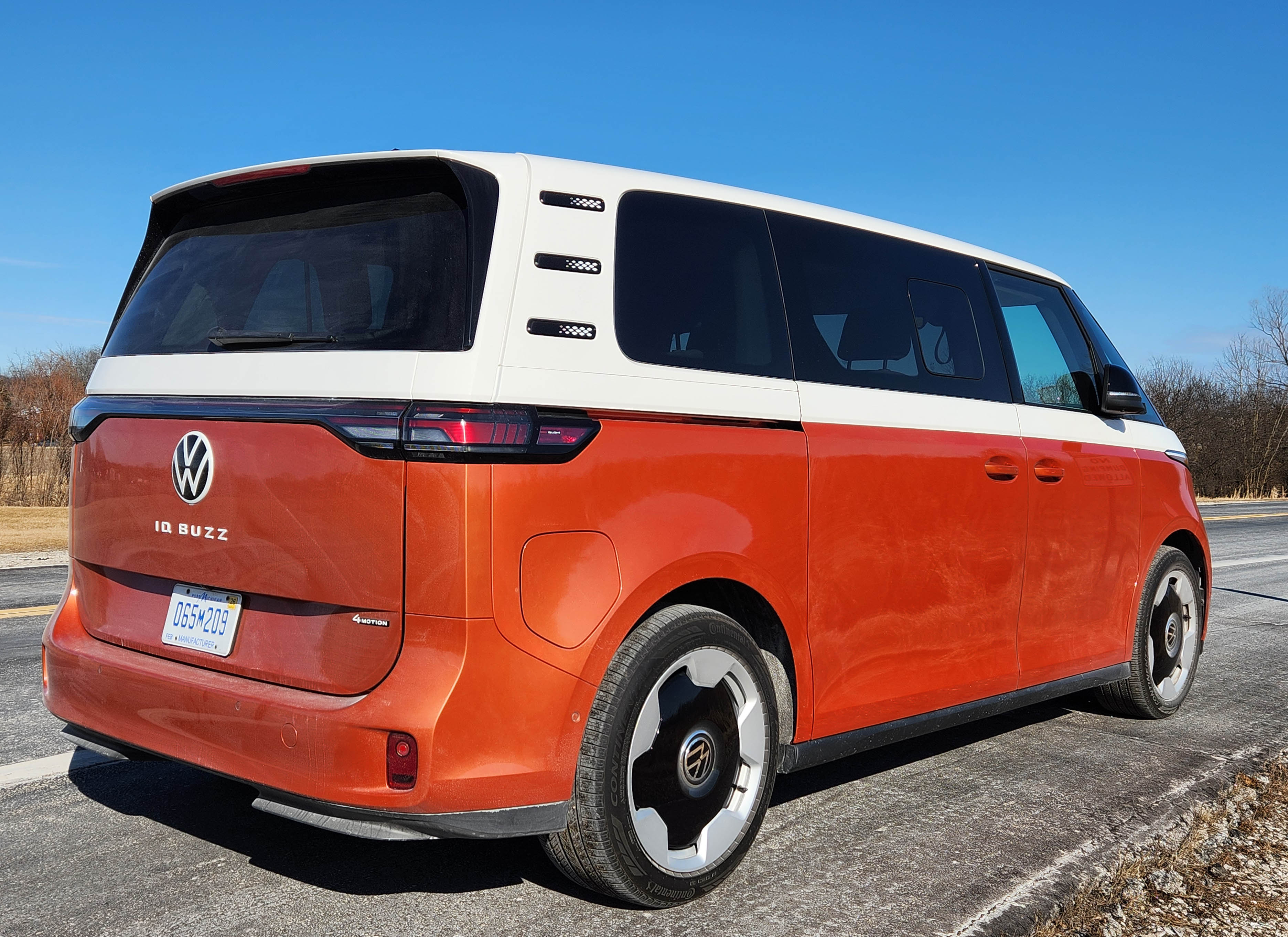 VW says the AWD model has a 231-mile range and the rear-drive 3 miles better, but a 90% charge during the wicked cold got me just 142 miles of range, although the digital dash initially said 152 before readjusting as I backed from the drive. Best I got was 180 miles of range on a warmer day and nearly fully charged. By the way, C&D maxed out at 190 miles in warmer weather.