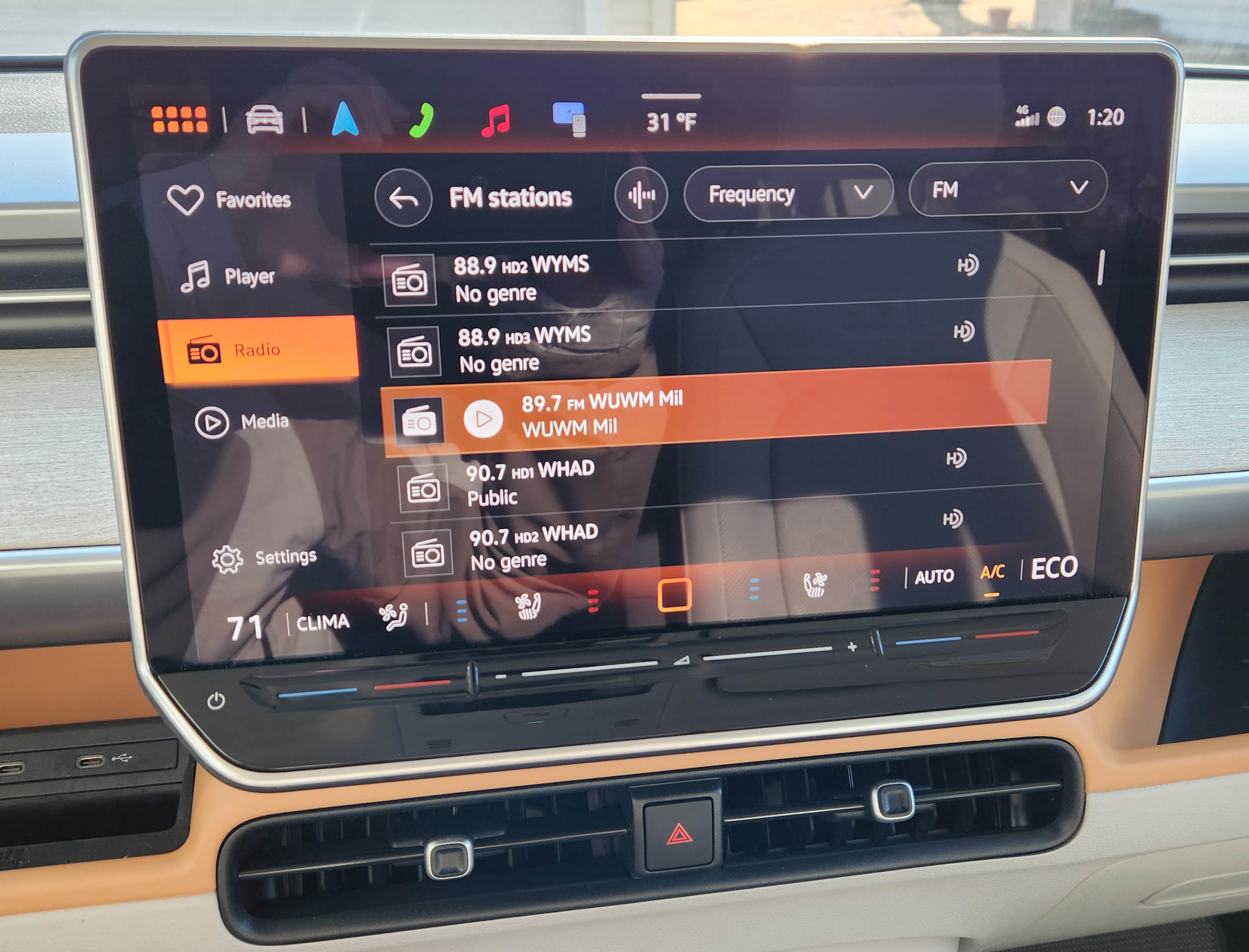 It was fairly easy to use too, although adjusting the radio stations took a bit of a hunt and a friend with an electric Mini had to point out the radio’s power button hidden on the edge of the screen. That was also easy to inadvertently hit when adjusting screen icons.
