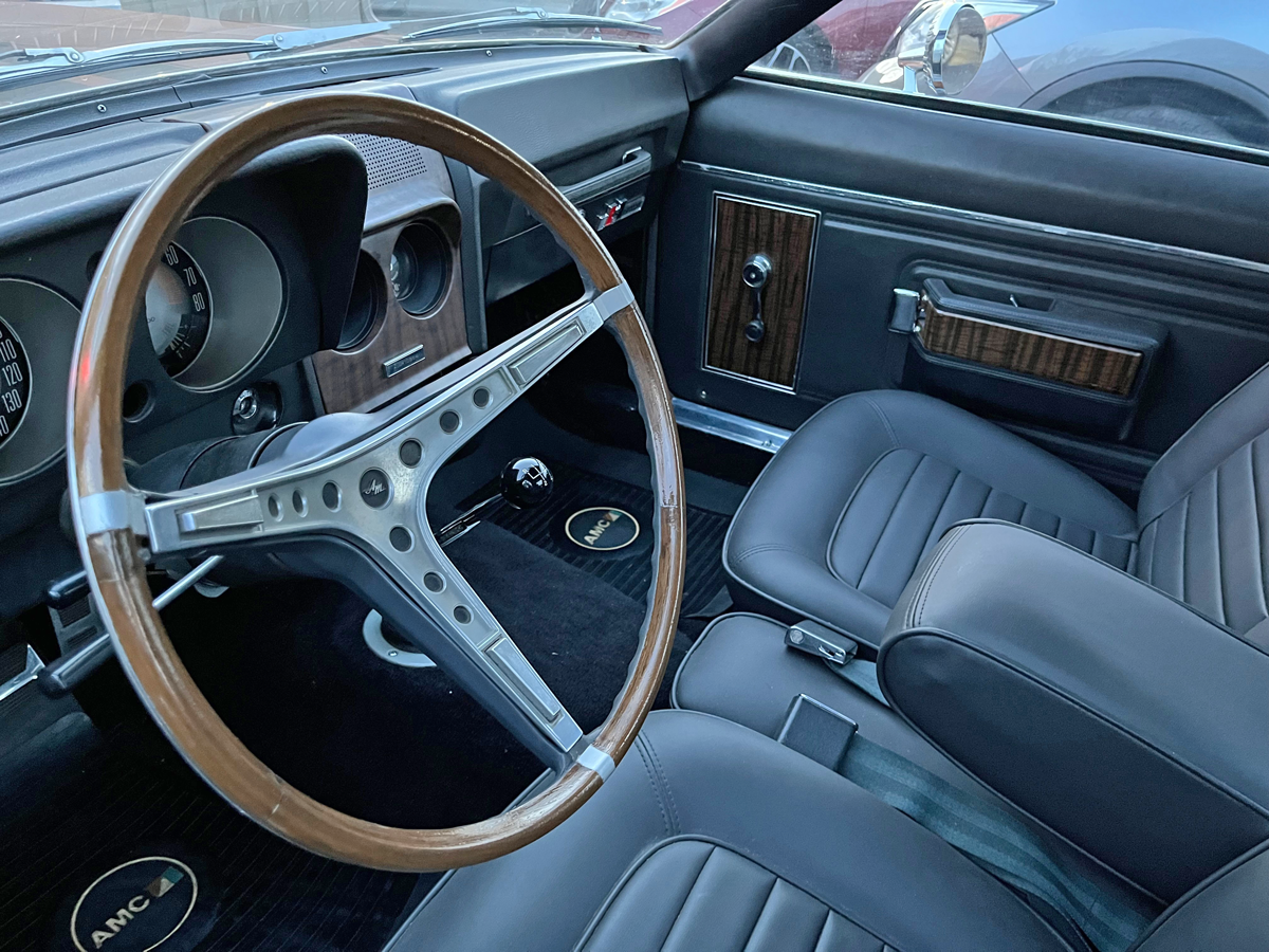 It was available with three engines, a 290cid/225hp 4bbl, 343cid/280hp 4bbl, or 390cid/315hp 4bbl. You could order it with a 4-speed manual floor shift or 3-speed “Shift-Command” automatic on the console. A hugely popular “Go-Package” option was available with the four-barrel 343 or 390 engine which included power-assisted front disk brakes, “Twin-Grip” differential, E70x14 red-stripe performance tires on 6-inch wide steel road wheels, heavy-duty suspension with thicker sway-bars, heavy-duty cooling. Plus buyers could purchase a wide range of specialized performance parts, “Group 19” through AMC dealers for installation on customer’s cars. My dad worked at the Parts Distribution Center in Milwaukee and told me they sold a lot of these.
