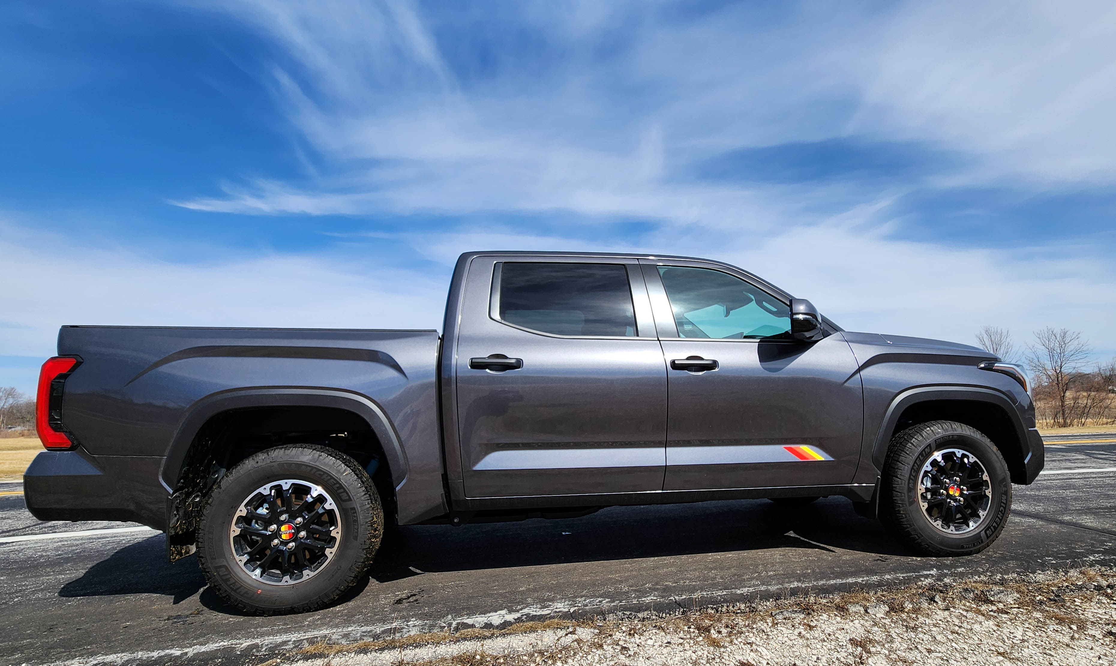 My SR5 Crewmax represents the second trim level of five, just up from the base SR with a smaller 358-horse engine and just two-wheel-drive.