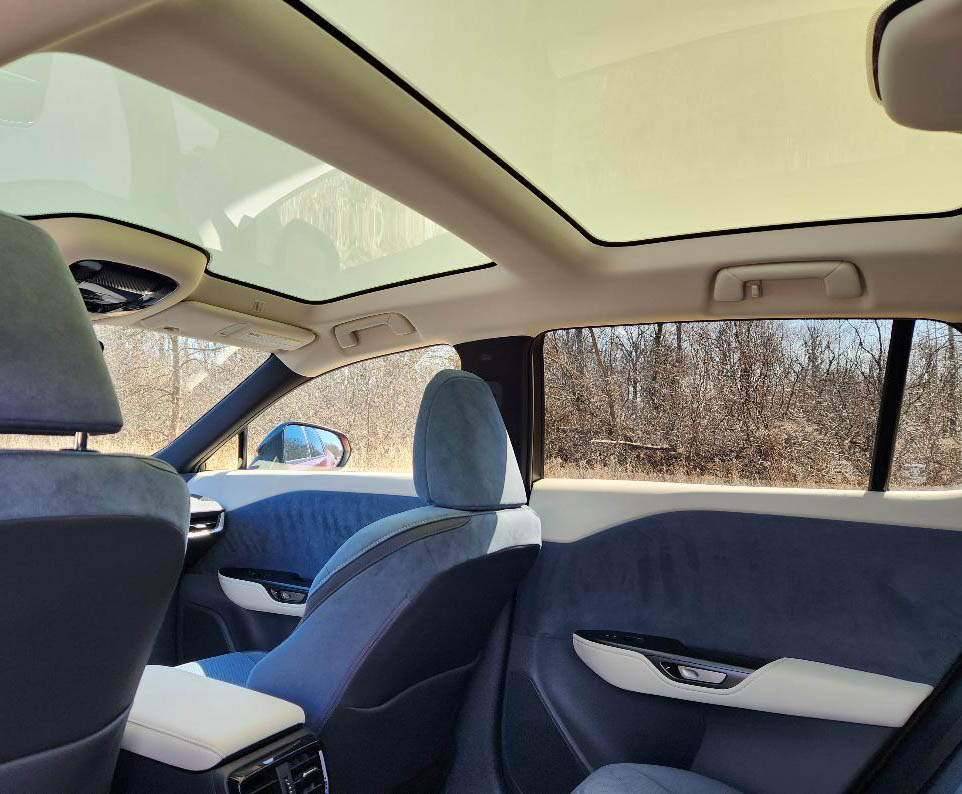 Plus they were amazed by the fancy high-tech panoramic sunroof (solid, so won’t open). No one cared about it opening though, they just wanted me to tap the overhead button that switched it instantly from clear to opaque. Seems like magic and never gets old when entertaining new riders. The miracle is what’s called “smart glass.” That’s electrochromatic glass where an electrical charge is transmitted through the window and aligns particles in the glass to turn the clear glass opaque. Thank you Mr. Science!