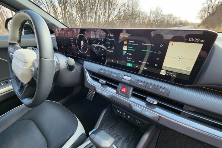 Kia, like it’s cousin Hyundai, combines the digital instrument panel and info screens in one smooth panel. There’s also a small digital panel between them that allows for some climate controls. That’s a little hard to see at times due to the steering wheel, but not a deal breaker.