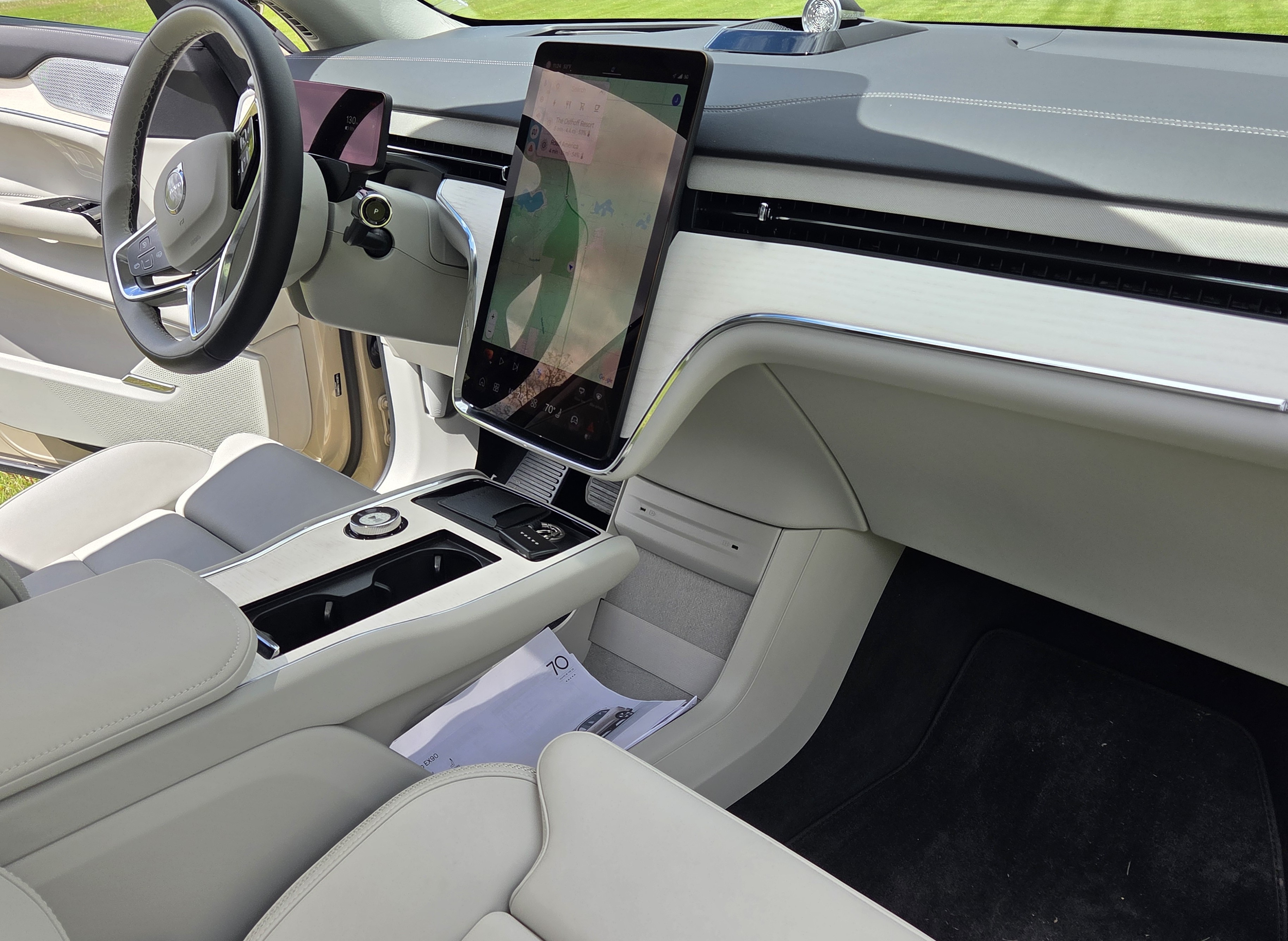For those concerned about the creamy looking leather seats, worry not. These are made of what the industry is now calling vegan leather, meaning man-made fake leather. But these did have a massaging function, which one might expect in any vehicle at this price point. Plus it’s designed in Sweden.