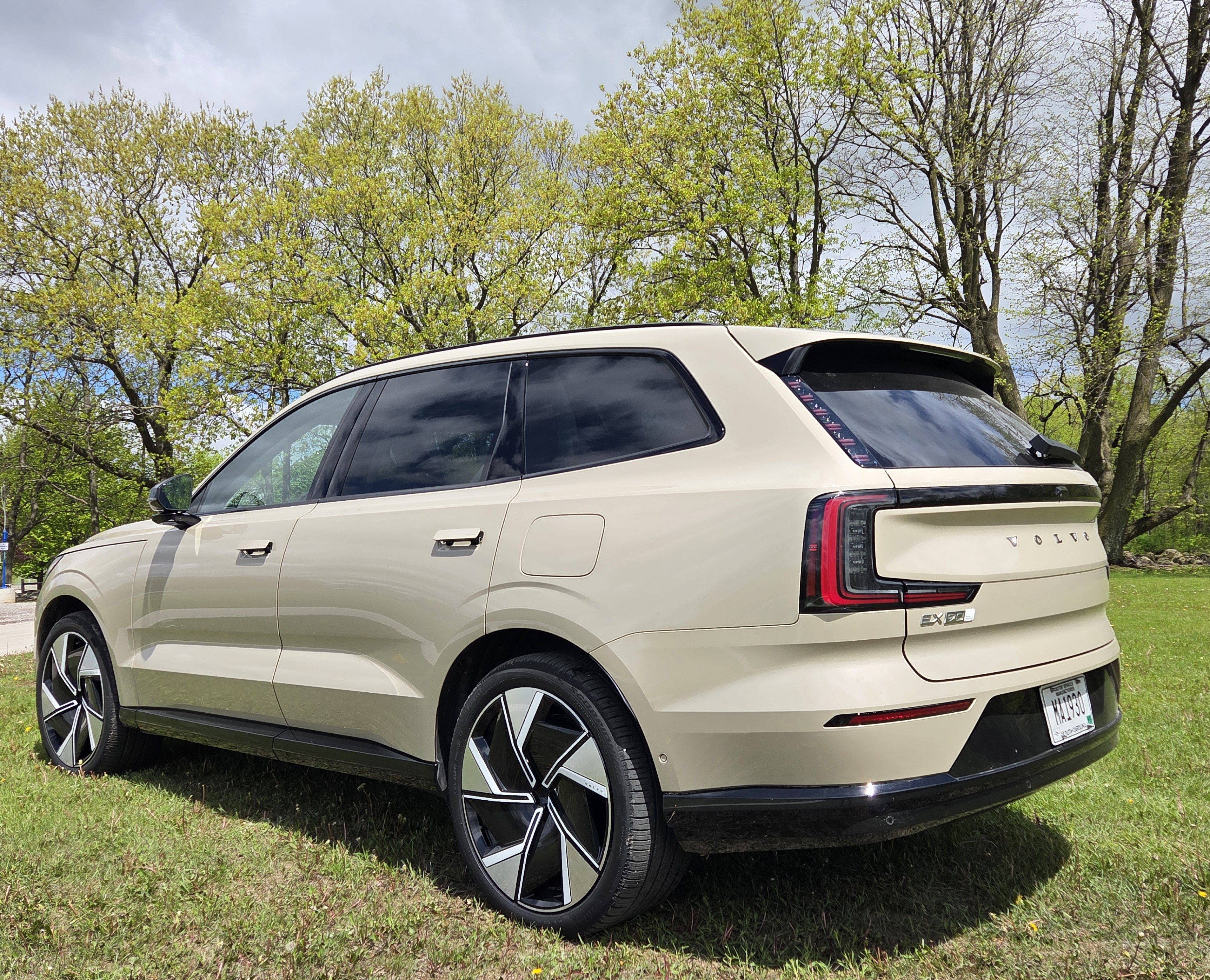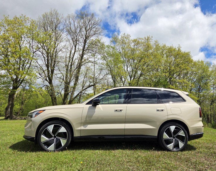 The EX90 rides on the same platform as Volvo’s Polestar 3 SUV. Polestar is Volvo’s EV-only lineup and traditionally has pushed a more stylish, modern exterior design, whereas the EX90 remains pretty boxy, like many other Volvo SUVs and the wagons that preceded them.