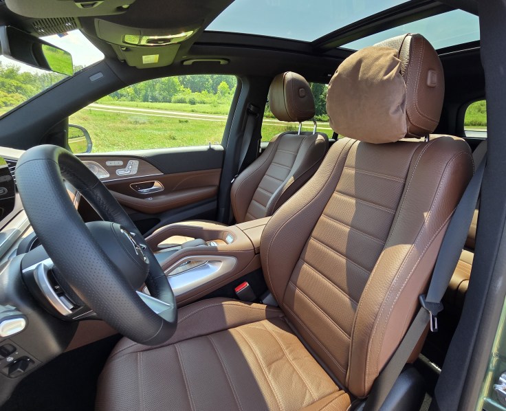 Remember too that the GLS has three rows of seats, this one with second row captain’s chairs so will haul six folks, while one with a bench would haul seven. Again, that’s a lot of performance for what passes as a country club family hauler.