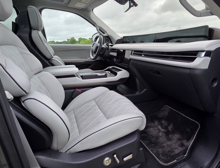 Seats are well shaped and include a bevy of adjustment buttons on the lower cushion’s side nearest the doors. That activates the big 12-inch info screen, below that 48-inch digital monster atop the dash. It allows a driver or the passengers to see what part of their seat they are adjusting and what sort of massage they prefer. Remember, both row 1 and 2 are massaged, with row 2 being captain’s chairs. If you opt for a bench instead the Navigato will seat 8.