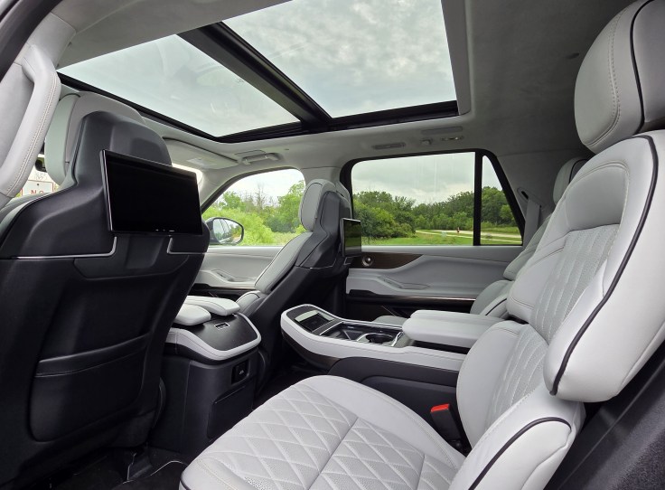 That starts with a smooth yet aggressively powerful 3.5-liter twin-turbo V6 mated to a silky 10-speed automatic transmission. The powerplant delivers 440 horsepower and 510 pound-feet of torque, but you’ll likely rarely hear it. Sound deadening in Navigator is primo and the power delivery on par with the silkiest luxury vehicles on offer.