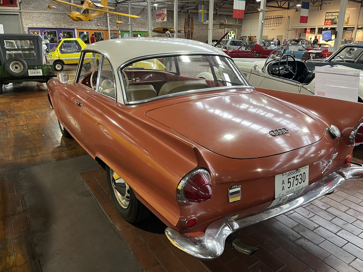 Auto Union found itself in a bit of a pickle in the late 1950s. Other European manufacturers had models that fit right in with the emerging sports coupe market, such as VW’s Kharman Ghia and Mercedes-Benz’s 190 SL Auto Union had nothing to offer and desperately needed a new, exciting model to promote themselves in this time of the Wirtschaftswunder, or German Economic Miracle. Seizing this opportunity, they contracted with the Baur coachworks in Stuttgart to wrap new, sporty sheet metal around an existing platform, and the 1000SP was born. The bodies were built by Baur, then shipped to the Auto Union factory in Ingolstadt for final assembly. I found this example at the Lane Motor Museum in Nashville, TN.
