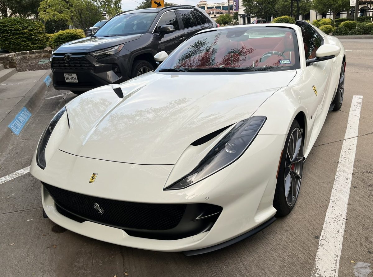About a month ago my wife and I went down to Grapevine TX to visit our daughter who works as a safety officer at DFW (Dallas-Fort Worth International Airport) and take in the Packer-Cowboy game. Everything is bigger in Dallas and AT&T stadium is huge. So are the amount of exotic cars I spotted while down there. We were having diner one night and parked right out front was this drop-dead gorgeous Ferrari 812 Superfast with the top off.