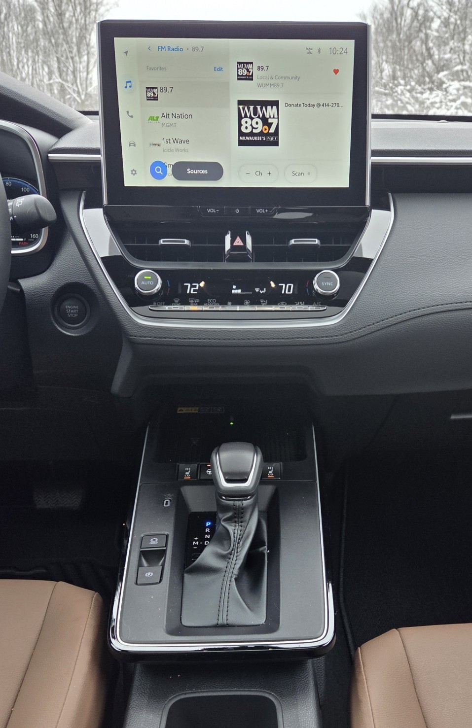 Corolla Cross wisely comes with Toyota Safety Sense 3.0, so solid safety equipment, including rear cross-traffic alert (when there’s no snow on the sensors) pre-collision systems, and automatic braking. Bravo!