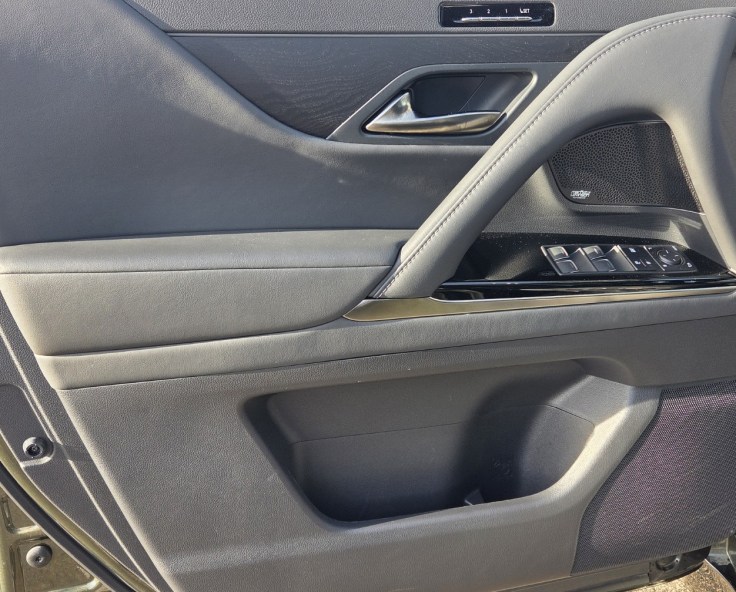 Wood? Certainly, some black wood accents grace the console top and are tastefully inserted in the door panels.