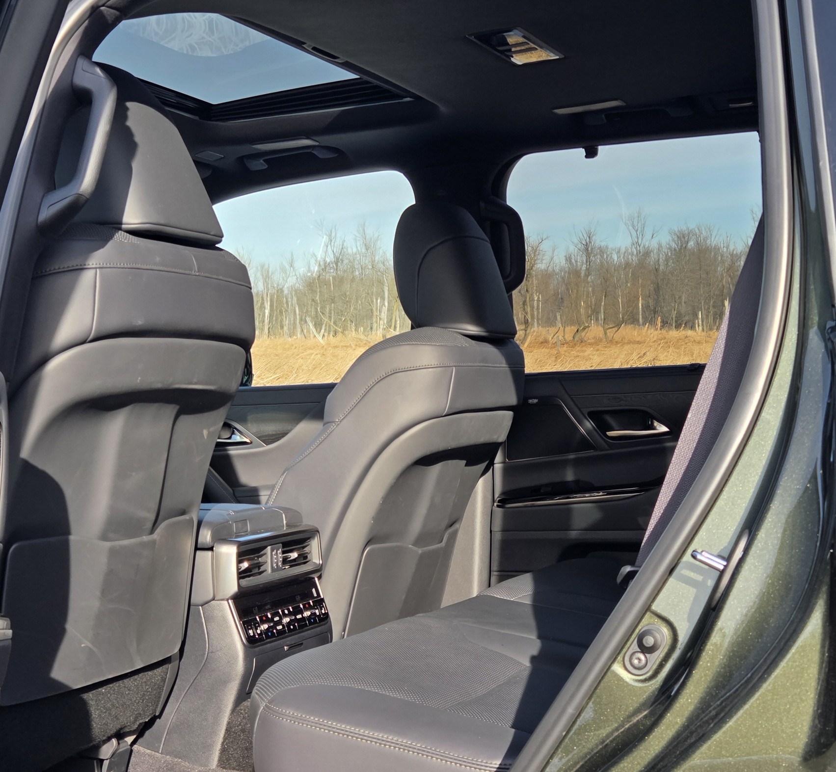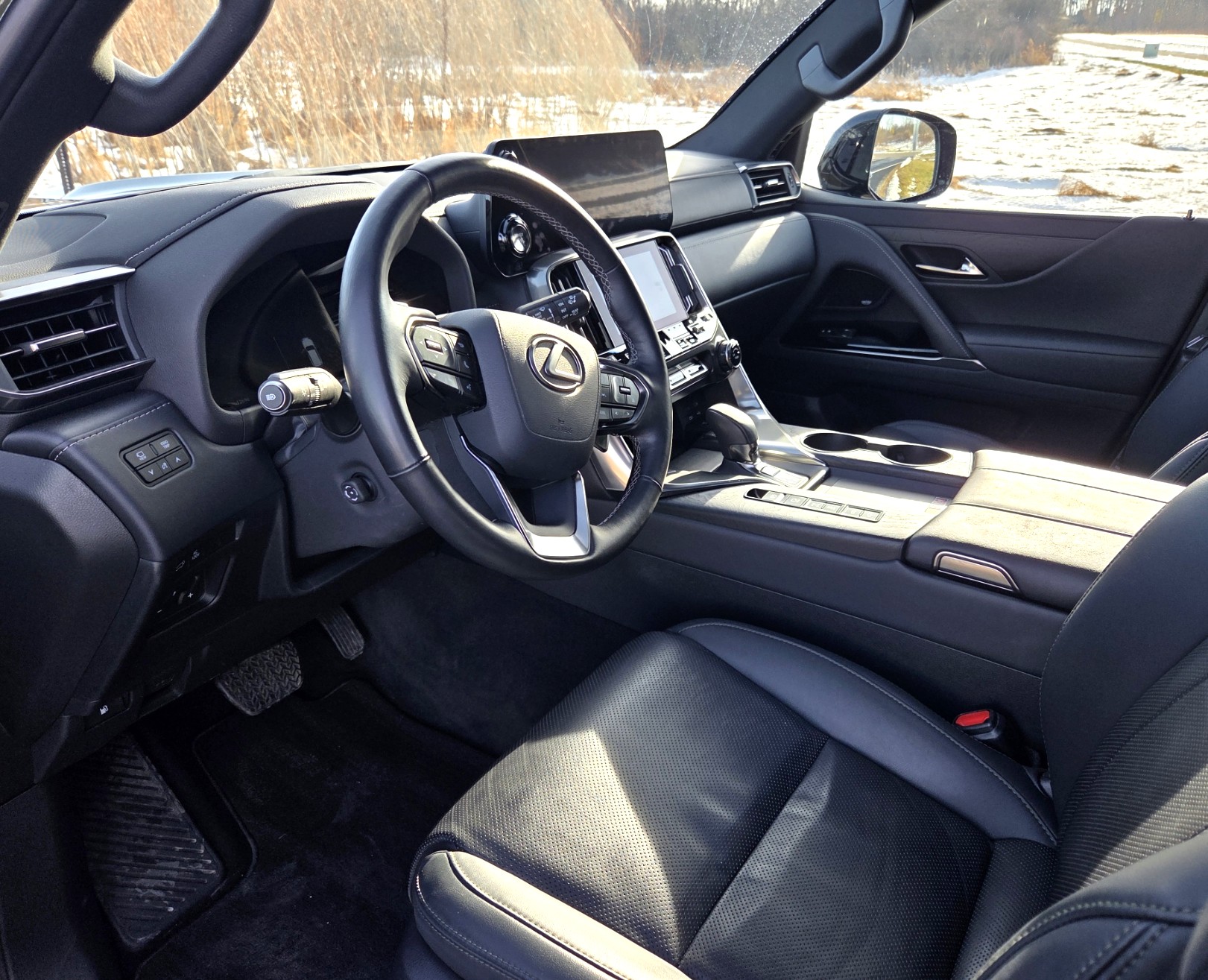 Get this. There are six drive modes topping out at Sport+, plus four vehicle height settings, five off-roading modes, three-speed automatic heated front and rear seats along with 2-speed automatic heated steering wheel. For good measure, Lexus tacks on five massage settings for the front seats. A little lower and to the left!
