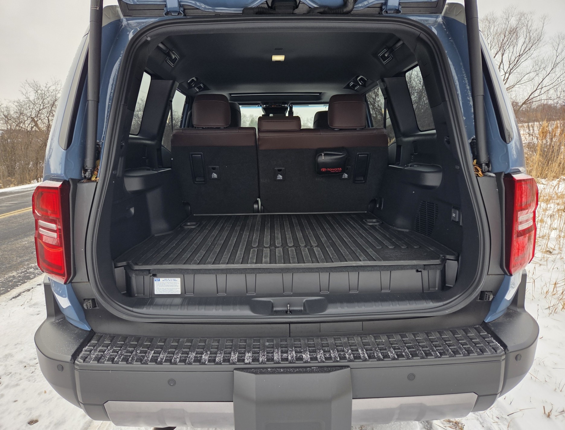Up top is a sturdy roof rack too. That adds $1,440 to the price tag and there’s a rubber cargo mat inside the hatch that costs $130. A bevy of other small options help push this $63,900 Land Cruiser up to $73,344, still pricy, but way less than the Lexus LX that started at $115k. Both are made in Japan, so may be impacted by tariffs.