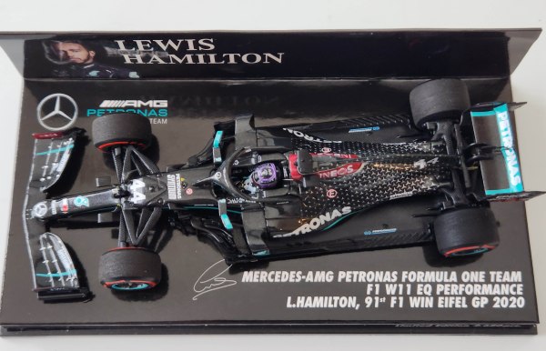 Minichamps Mercedes-AMG Petronas W11:Lewis Hamilton, 2020 Eifel GP Record 91 wins ... Another Formula 1 season starts this weekend and to mark the season’s launch it seems appropriate to review a Minichamps 1:43 scale model of the Mercedes-AMG Petronas driven by all-time F1 race winner Lewis Hamilton, when he set the record in 2020. Sir... Continue Reading →